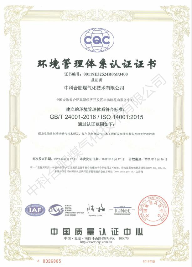 In August 2019, ZHGAS successfully obtained Triple ISO Certification, including:
